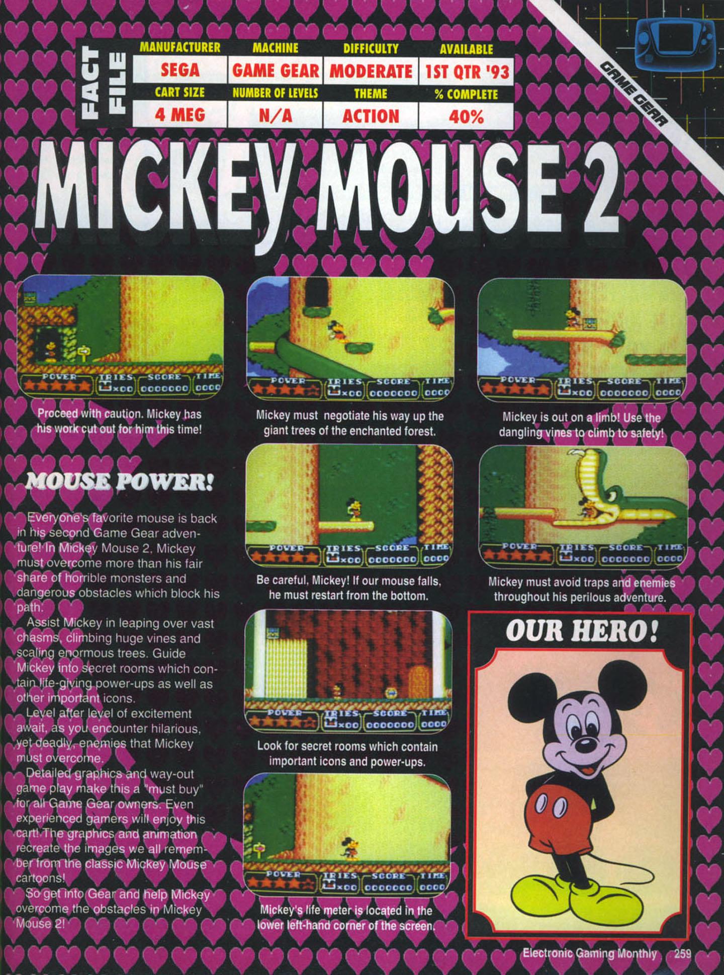 Going on to the Game Boy (and other portable systems), we’re getting Super Mario Land 2, which introduces the new series character of Wario. Also, Bonk is coming from the Turbografx/TurboDuo to the Game Boy as well. The Game Gear is getting Alien 3 – sorry – Alien^3. We’ve then got a preview of Mickey Mouse 2, which, because of the combination of backdrop and font, is really hard to read. The Lynx is getting an incredibly pixelated version of Pit Fighter.