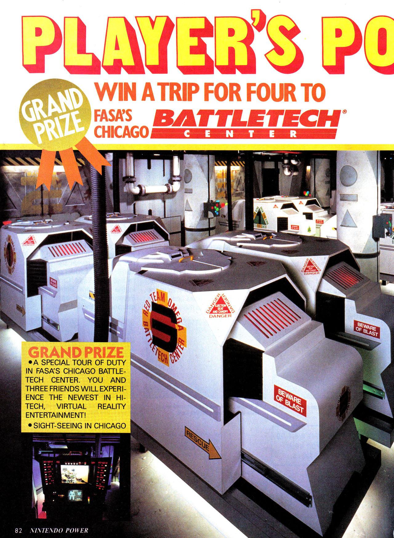 Councelor’s Corner: We get notes on finding the Jailor’s Key in Dragon Warrior II. Oh, and we still have more questions on Legend of Zelda. You know, since you’re not doing the Special Strategy Guide issues anymore, you might as well do a full official strategy guide for Legend of Zelda (and probably another for Metroid, for good measure). Oh, and Nintendo Power is doing a contest where you can read a trip to FASA’s now defunct Battletech mech center. It definitely looks really cool, IMHO, and I really wish that someone would revive the concept. Second place winners get the rules for battletech. Not bad, if I don’t say so myself. The 3rd place prize (unfortunately) isn’t Battletech related – you get the standard Nintendo Power jersey. I’d have created a new shirt design myself (maybe something with Nester in a Mechwarrior’s attire).
