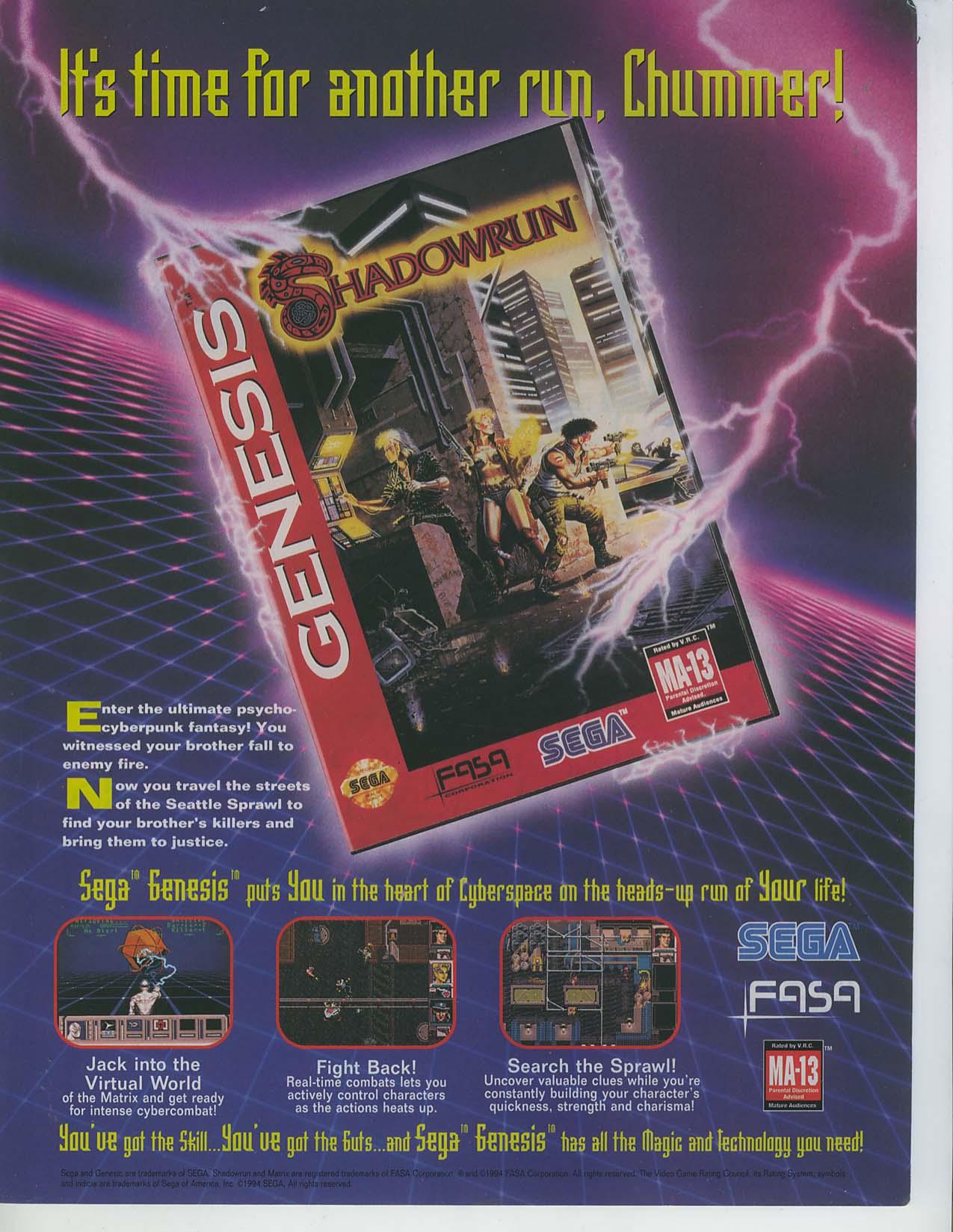 Oh, and we’ve now got our first ad for the Shadowrun game for the Genesis, which probably had gameplay and mechanics a little closer to the paper and pencil game, though the ending of the game isn’t as good. We also get an ad for the album Video Games Greatest Hits by Tommy Tallarico, who would later bring us Video Games Live. The ripped up grunge jeans and the letterman’s jacket are clashing horribly… and if Tommy wanted this picture to disappear out of the public eye, I probably wouldn’t blame him.